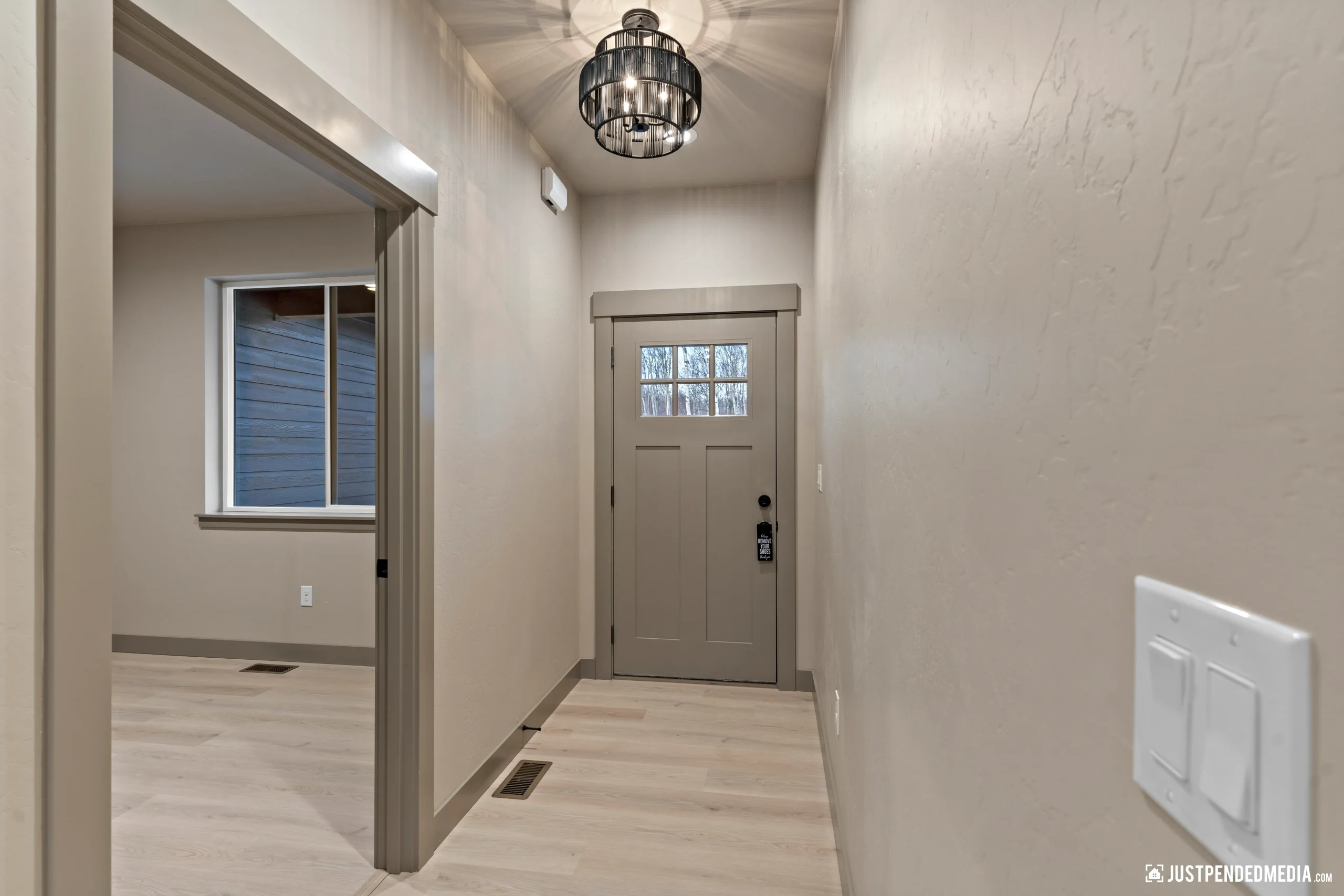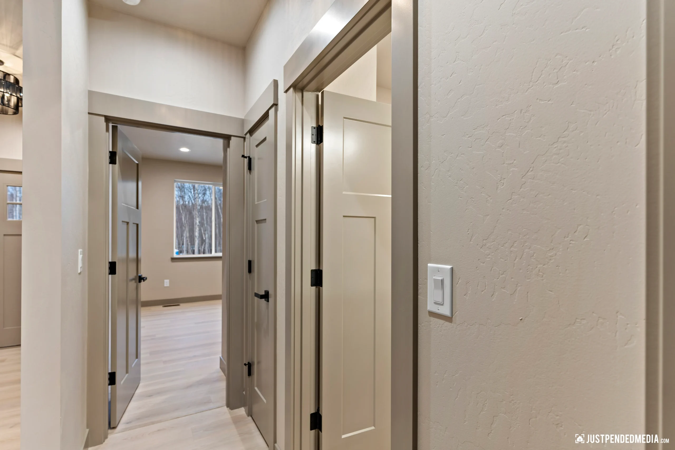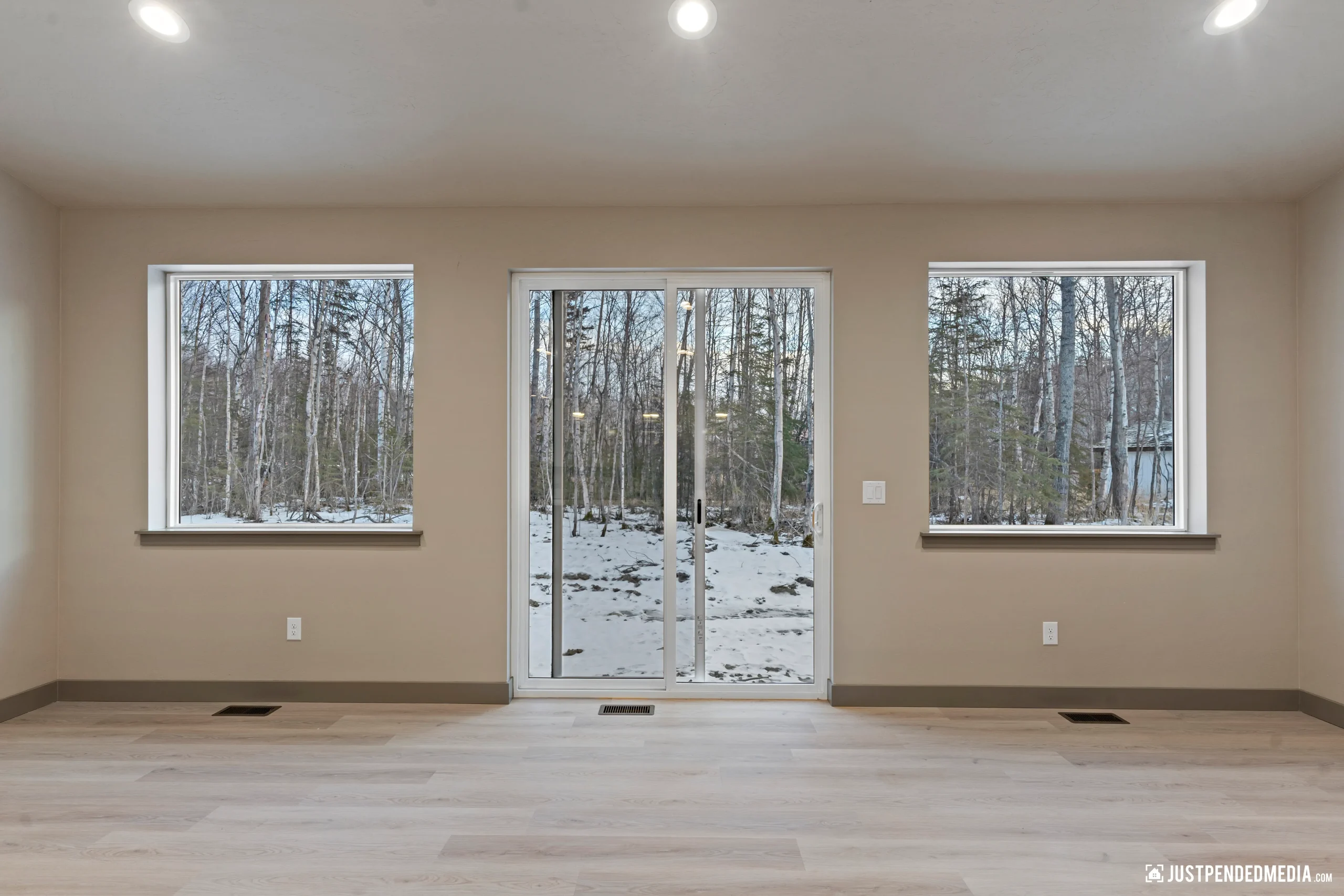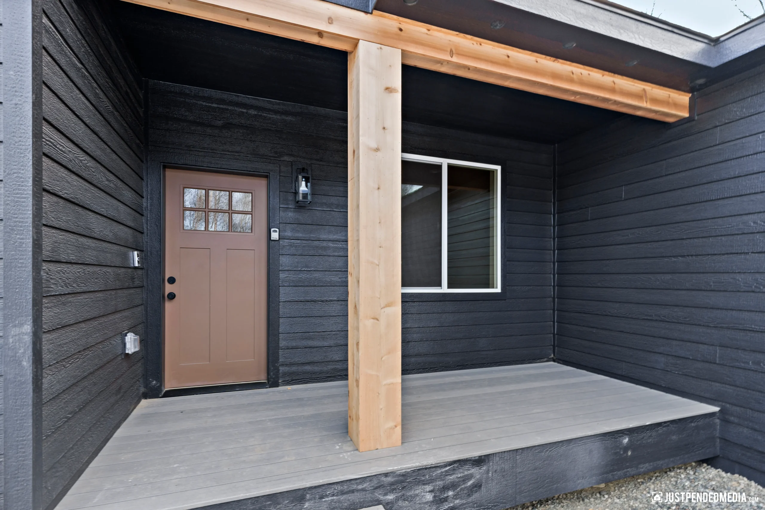 Welcome to this stunning new-construction Alaskan retreat, perfectly nestled in a peaceful wooded setting. Priced at an incredible $400,000, this highly efficient 1,450-square-foot residence features 3 bedrooms, a dedicated home office, and 2 full bathrooms. The striking exterior boasts modern dark board-and-batten siding beautifully contrasted by warm natural timber accents and an inviting covered front porch, all complemented by a 450-square-foot attached 2-car garage to keep your vehicles out of the snow.