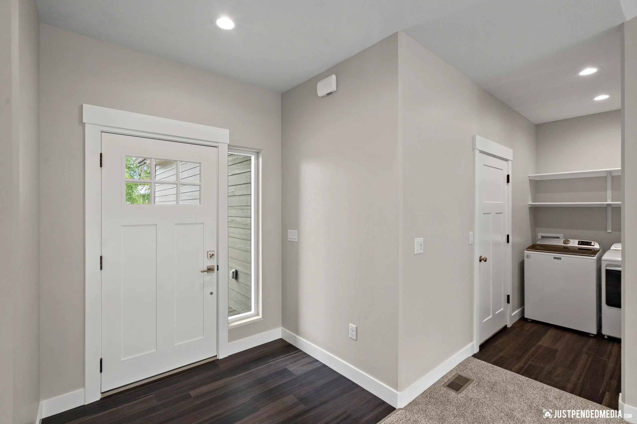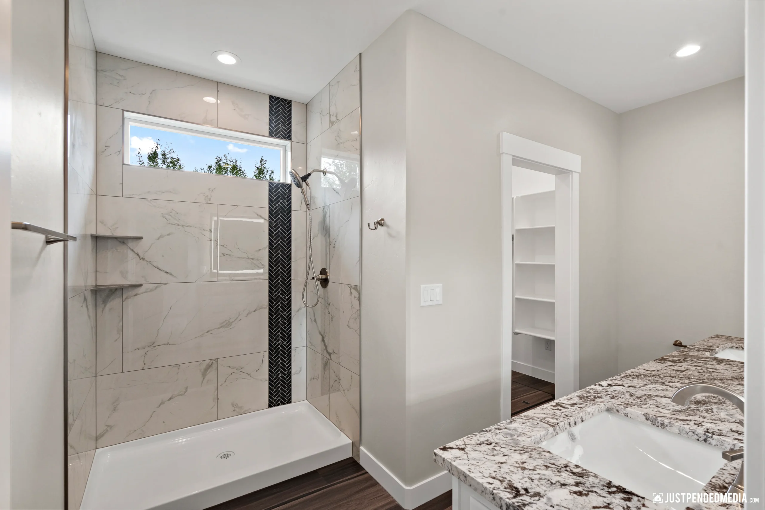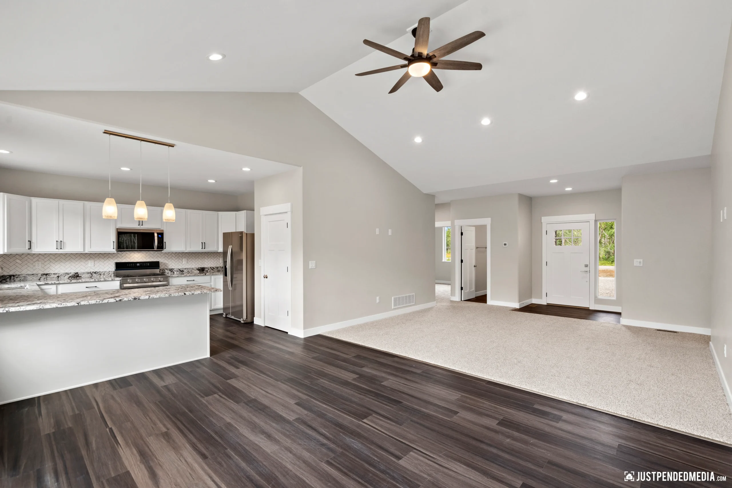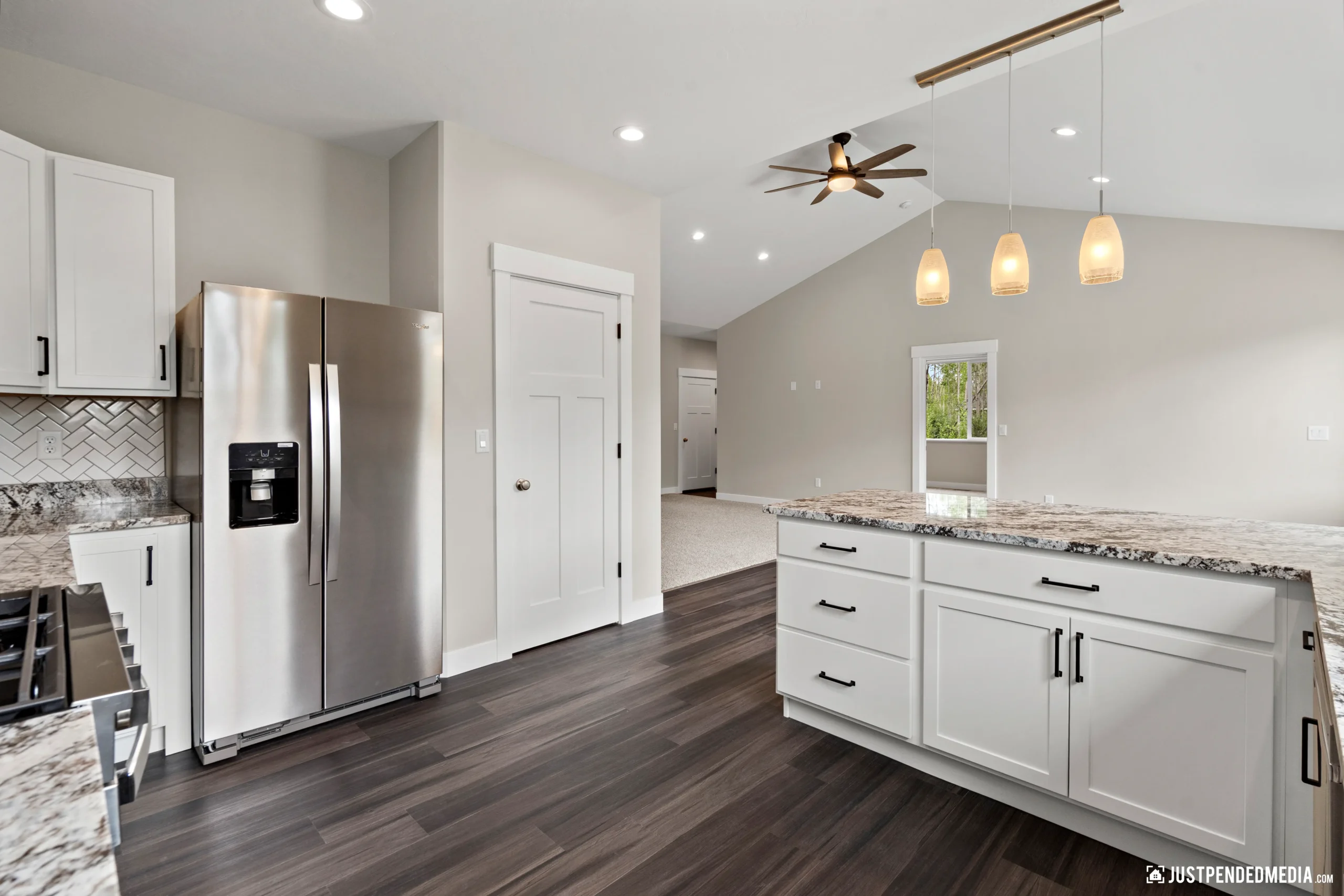 Step inside to a bright, open-concept living area boasting vaulted ceilings, sleek dark wood-look flooring, and modern lighting fixtures. The heart of the home is a stunning kitchen equipped with white shaker cabinetry, striking granite countertops, and premium stainless steel appliances. The primary suite offers a private retreat with a luxurious en-suite bathroom featuring a custom tiled walk-in shower and an oversized LED-backlit mirror. Complete with a dedicated laundry area and a substantial 688-square-foot heated garage ready for winter, this home effortlessly combines elegant modern finishes with practical Alaskan utility.