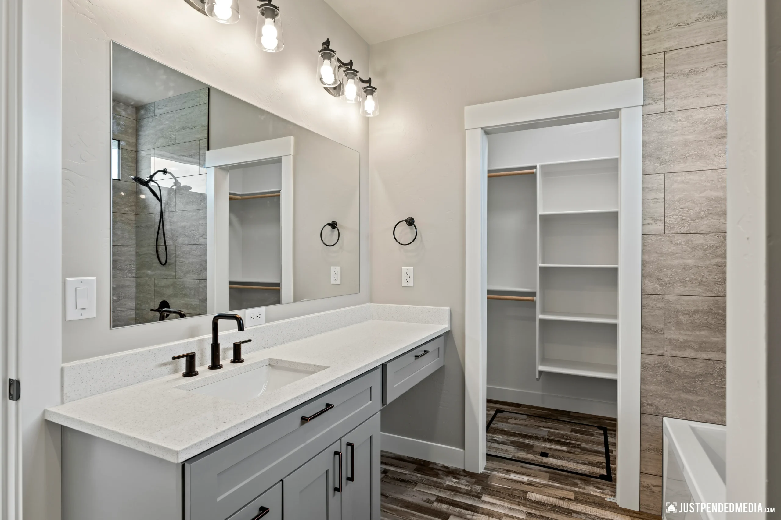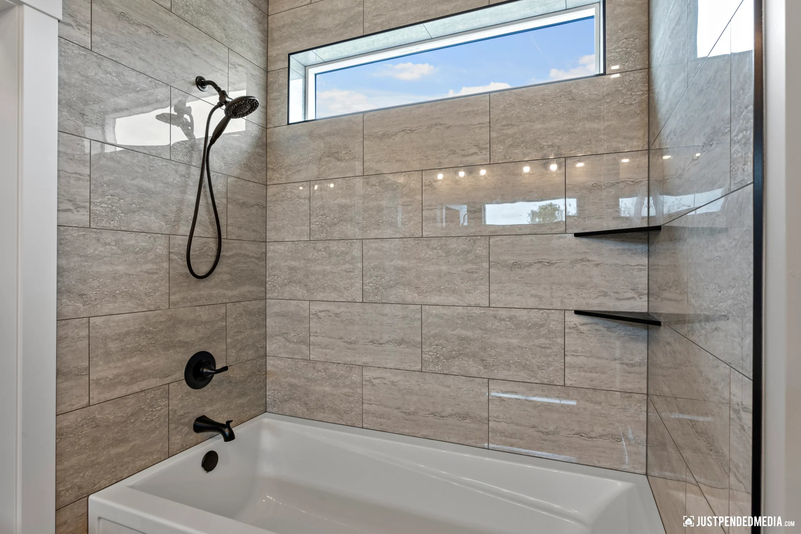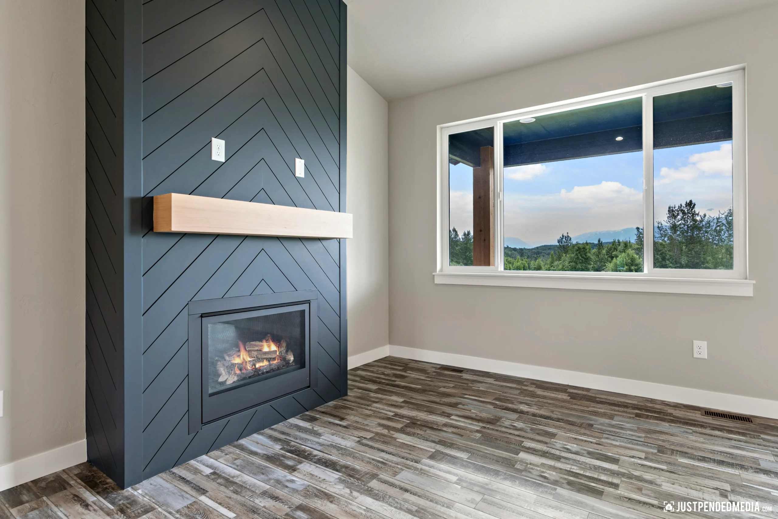 Inside, the open-concept layout is illuminated by abundant natural light and anchored by gorgeous multi-tonal wood-look flooring. The focal point of the living area is a dramatic, floor-to-ceiling chevron wood accent wall with a cozy built-in fireplace. Flowing seamlessly into the kitchen, you will find trendy two-tone cabinetry, pristine white countertops, and sleek stainless steel appliances. With a luxurious primary suite featuring a custom-tiled shower, stylish matte black fixtures throughout, and a spacious 665-square-foot attached garage for all your Alaskan gear, this home offers incredible value and move-in-ready modern comfort.